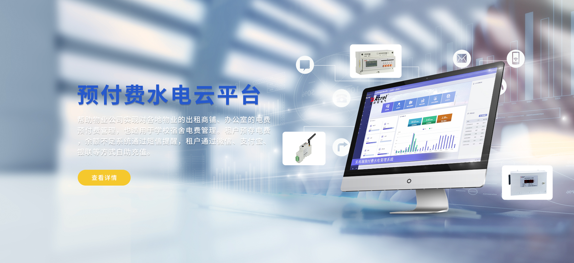安科瑞提供的解決方案包括Acrel-EIoT能源物聯網云平臺、變電所運維云平臺、安全用電管理云平臺、環保用電監管云平臺、智慧消防云平臺、能源管理云平臺、工業企業能源管控平臺、遠程預付費云平臺餐飲油煙監管云平臺電動汽車/電瓶車充電樁收費管理云平臺、電力監控/無線測溫系統、電能質量治理系統、電氣火災監控系統、消防設備電源監控系統防火門監控系統、應急照明和疏散指示系統、智能照明控制系統、醫用隔離電源絕緣監測系統等,幫助用戶實現能源智能化、可視化、精細化管理,提高用能效率和用能安全,為企業節能降耗和實現能源數字化建設提供數據服務。
